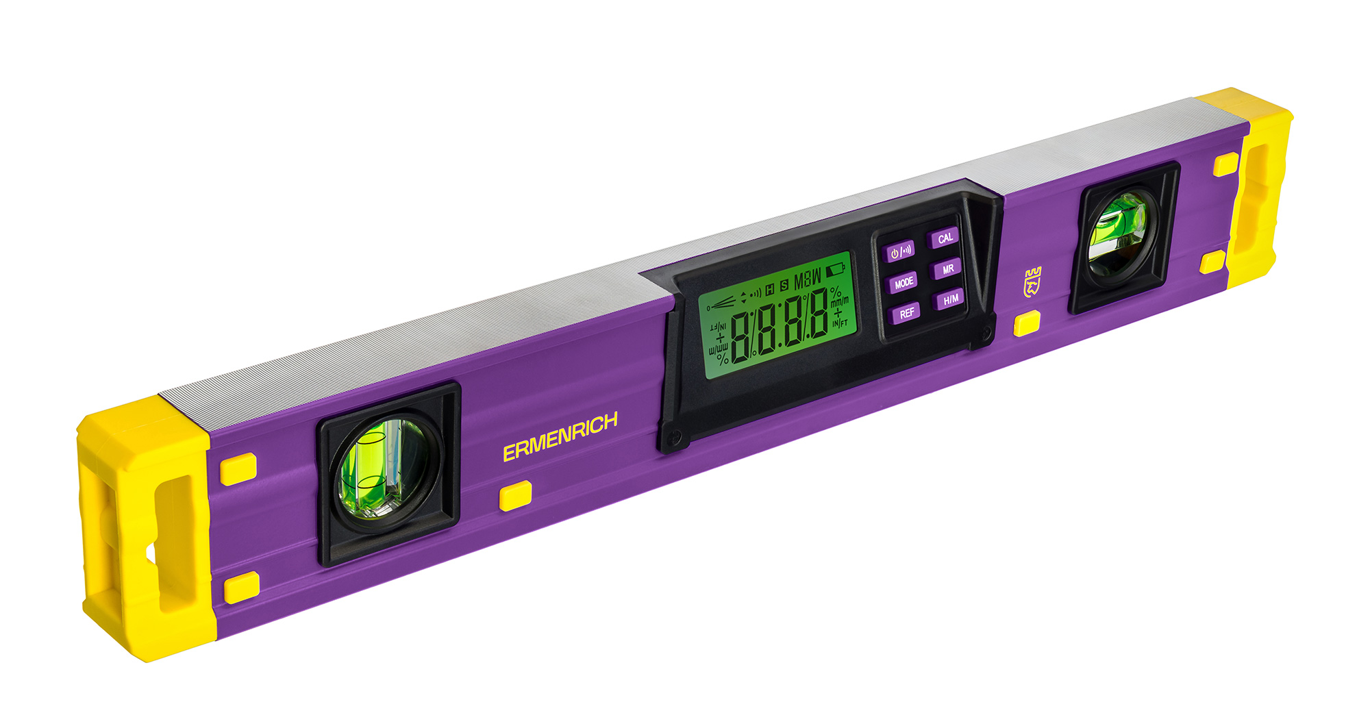 Az Ermenrich Verk LY40 két precíz buborékmérőt tartalmaz, így a készülék szabványos buborék vízszintezőként is használható szintezéshez. A robusztus, víz- és porálló készülékház biztosítja a sikeres működést az építkezések vagy a gyártóüzemek zord körülményei között. A szintező két hagyományos AAA elemmel működik. A 3 perc inaktivitás után aktiválódó automatikus kikapcsolási funkció és az alacsony töltésszint-jelző optimalizálja az energiafogyasztást. A mágneses talp segítségével a készüléket fémfelületen is rögzíteni lehet.