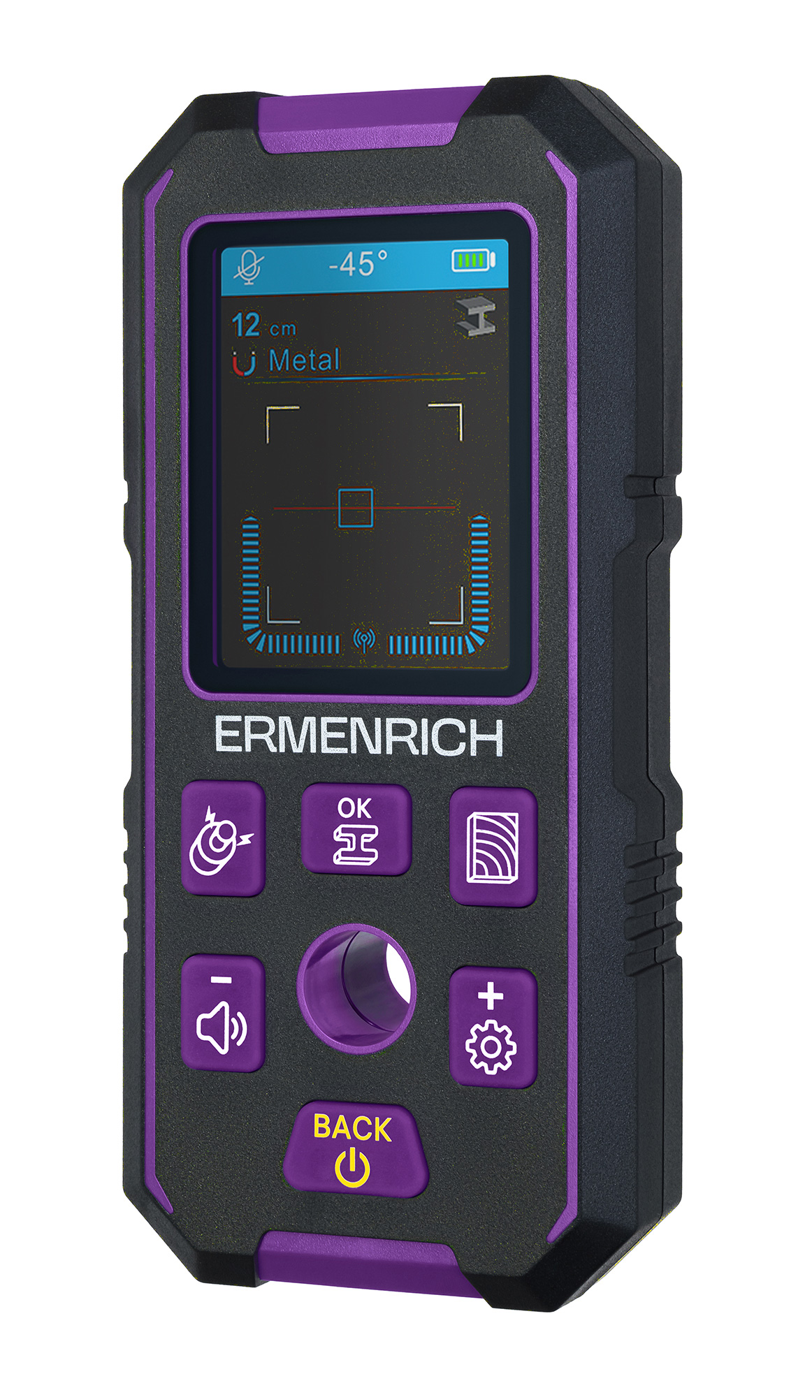 Az Ermenrich Ping SM70 falszkenner segítségével a falban, padlózatban és a mennyezetben lévő fémtárgyak (csövek, betonacélok, önbehúzó csavarok), feszültség alatt lévő vezetékek és faszerkezetek deríthetők fel. Az építkezések, javítási és befejezési munkálatok, valamint beszerelési munkák biztonságos elvégzésekor van rá szükség. Például, fúráskor véletlenül sem fog feszültség alatti vezetékbe fúrni, vagy fémtárgyba fúrva tönkre tenni a fúróhegyet. Az Ermenrich Ping SM70 falszkennert nemcsak a szakemberek tudják széleskörűen alkalmazni, otthoni eszközként is hasznos lehet.