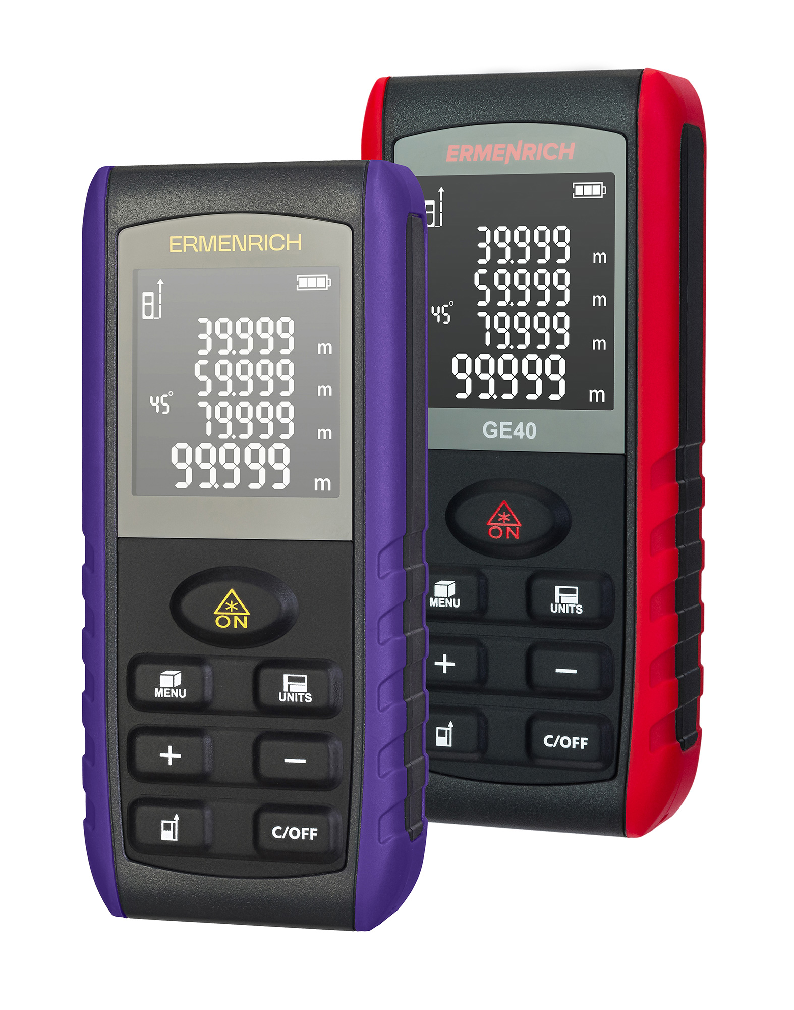 Az Ermenrich Reel PRO GE40 lézeres mérő praktikus, multifunkciós eszköze építési, javítási, és mérnöki munkákhoz. Segítségével max. 40 méterig mérhet távolságokat, továbbá területet, térfogatot és szögeket számíthat. Ha nehéz körülmények között kell méréseket végeznie, a Pitagorasz-tétel funkció köztes mérésekből segít kiszámítani a távolságot.