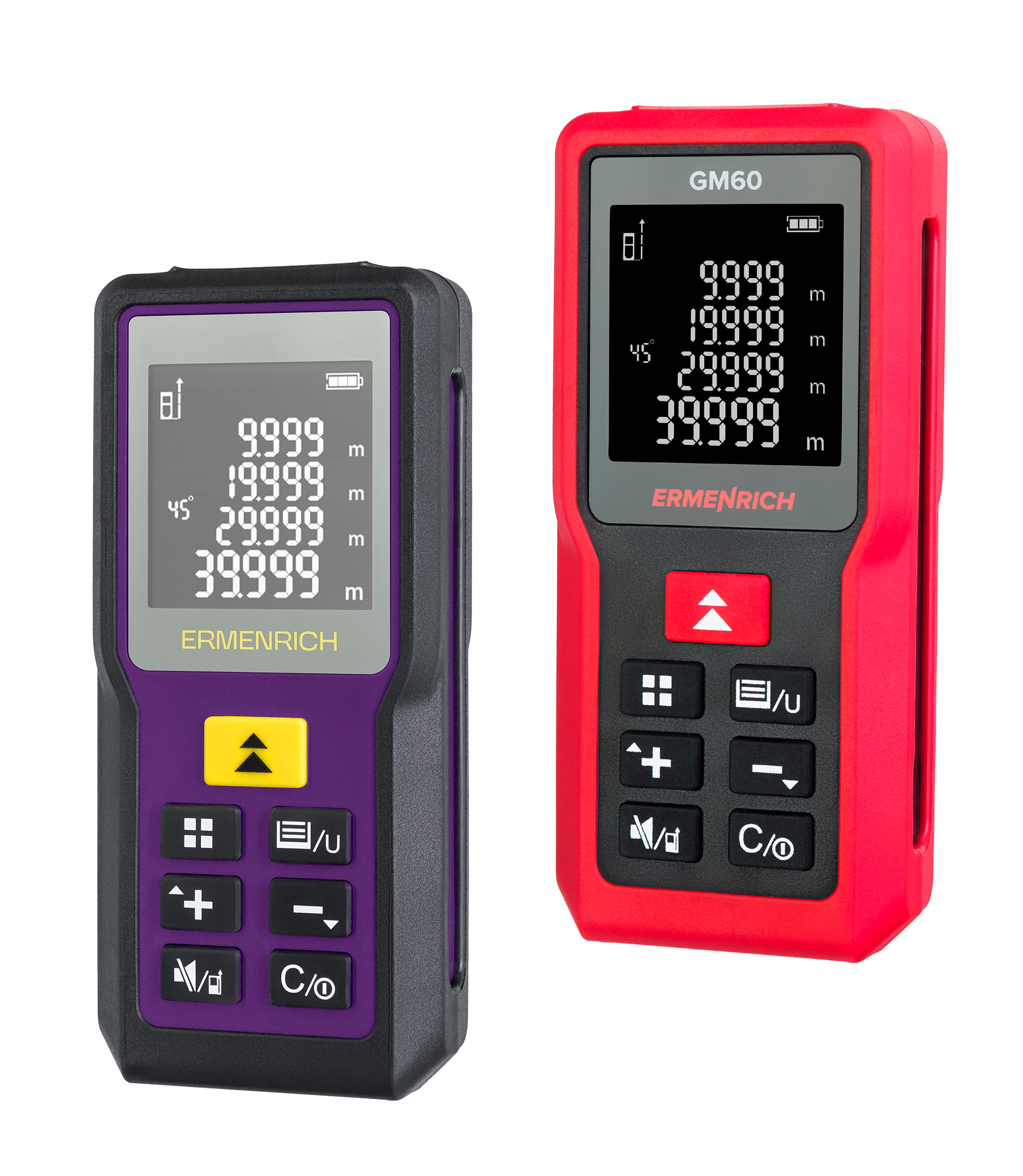 Az Ermenrich Reel PRO GM60 kompakt kialakításának és nagyméretű, 4 soros kijelzőjének köszönhetően igazán felhasználóbarát. Tud egyszeres távolságmérést és folyamatos mérési módokat is, valamint többféle mértékegység is választható. A profik értékelni fogják a néma üzemmódot – a hangjelzések kikapcsolásával csendben dolgozhat. A készülék 2 szabványos AAA elemmel működik, több mint 5000 mérés végezhető elemcsere nélkül. A lézeren és magán az eszközön is van energiatakarékos automatikus lekapcsolási funkció. A készülék előzményeiben nagy mennyiségű adat tárolható – 100 csoportban.